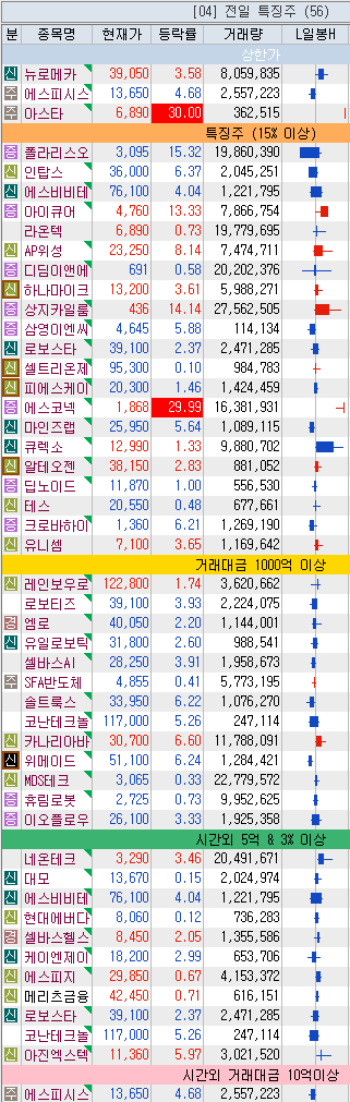 전날 상한선Sphyscis가 없는 Neuromeka와 Astar는 증가를 보였습니다. 특히 아스타는 전날에 이어 상한가를 치는 등 강한 상승세를 이어갔다.