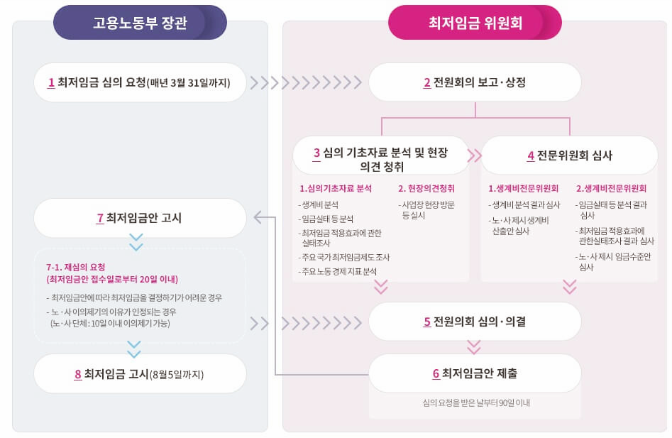 최저임금 결정절차는 다음과 같습니다.