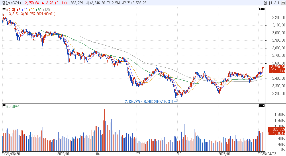 KOSPI종합차트 (CPI 발표에 따른 Strong Integrity 마감)